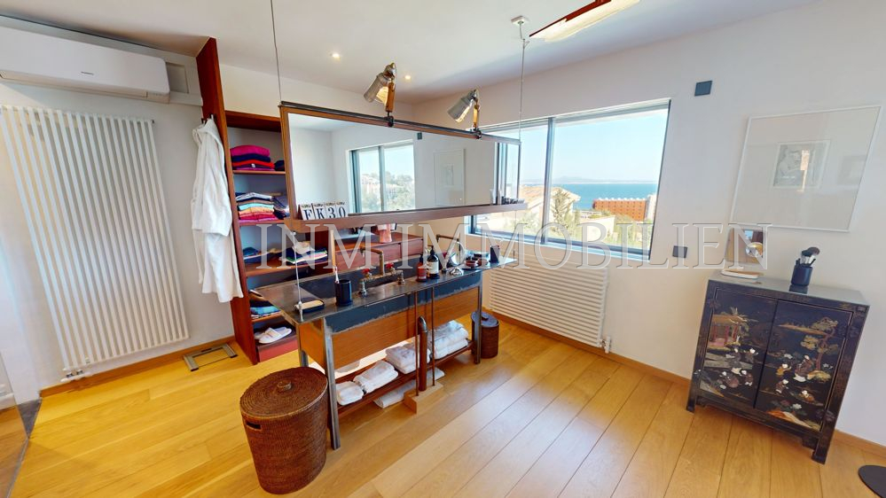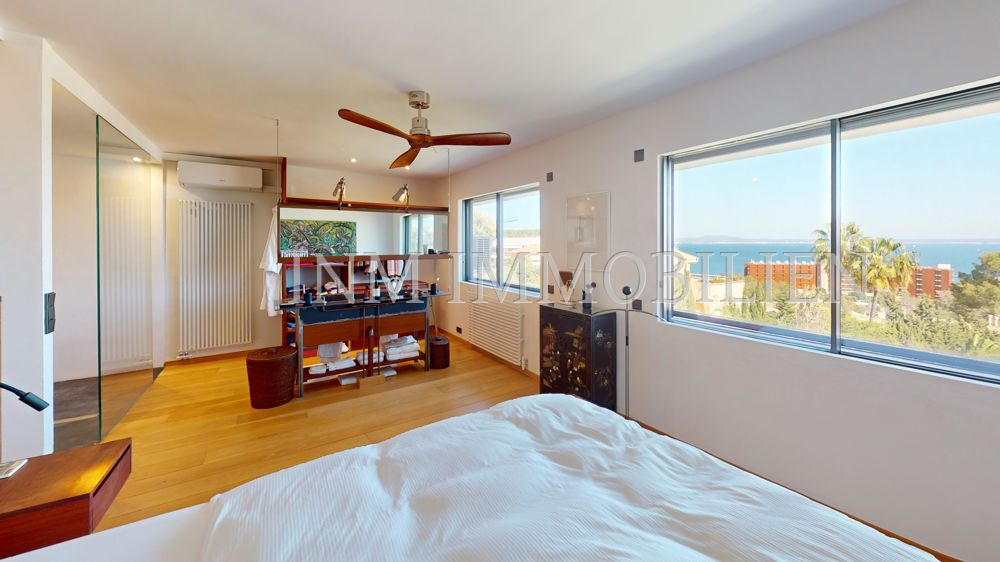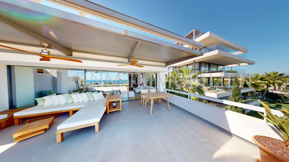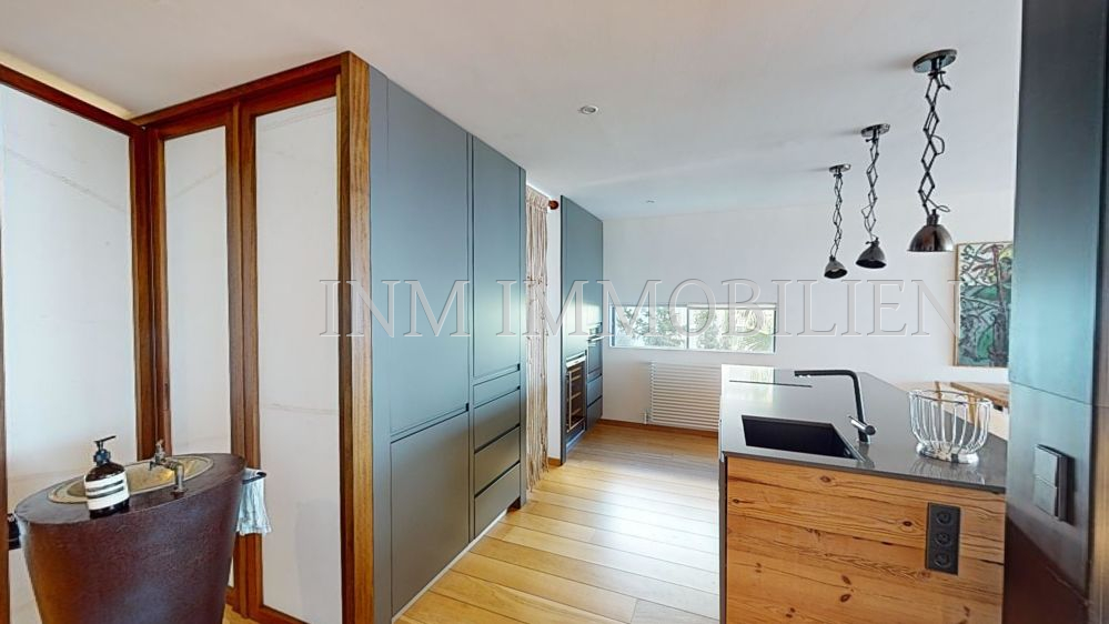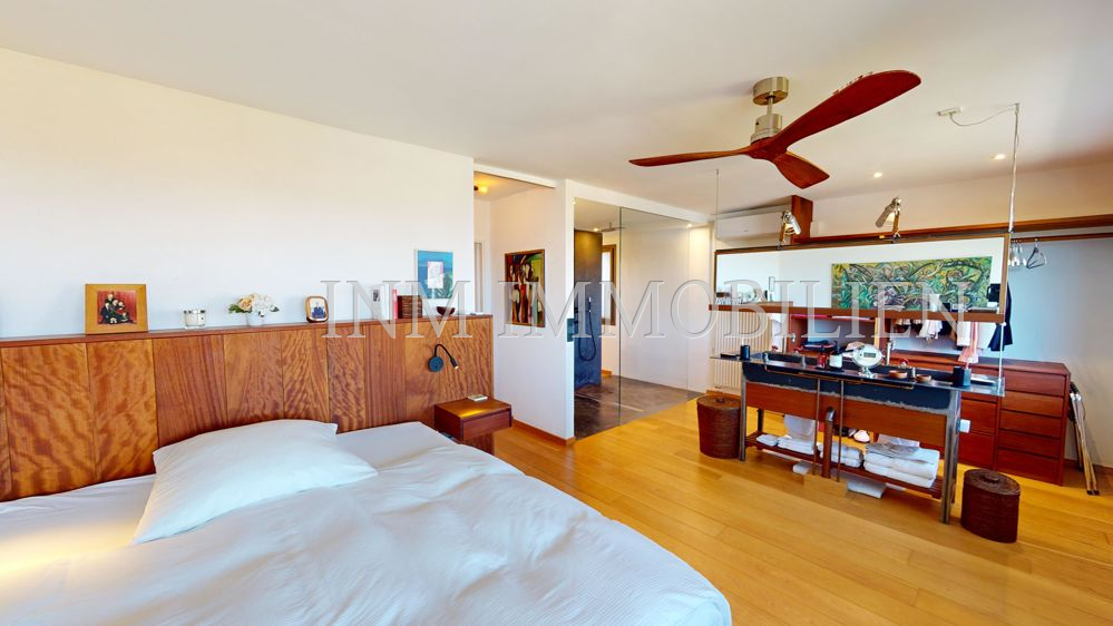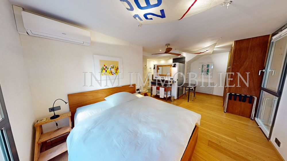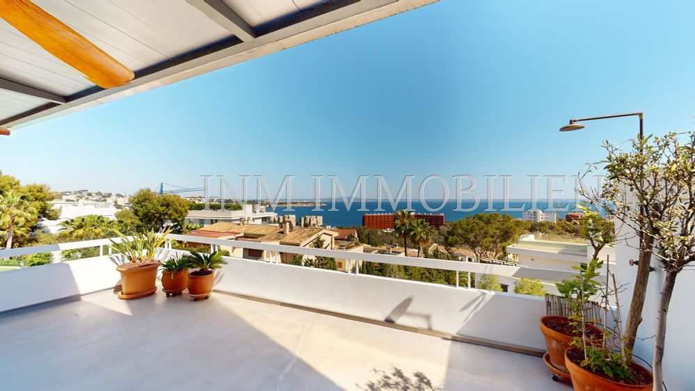 Wunderschönes, modernes Duplex in bester Lage im Südwesten der Insel. Dieses einzigartige Anwesen besticht durch einen großen, lichtdurchfluteten Wohnbereich mit einem herrlichen Blick aufs Meer. Für wohlige Wärme sorgt ein moderner Kamin mit Holz. Die moderne, voll ausgestattete, offene Küche ist in elegantem Anthrazit gehalten und bietet alle Annehmlichkeiten für kulinarische Genüsse. Der Wohnbereich verfügt über tolle, verschiedene Lichtelemente, die eine angenehme Atmosphäre schaffen. Der Parkettboden verleiht dem Raum ein edles Ambiente. Deckenventilatoren und Heizkörper sorgen in allen Räumen für angenehme Temperaturen zu jeder Jahreszeit. Das Schlafzimmer ist über eine stilvolle Treppe vom Wohnbereich aus erreichbar. Es verfügt über ein offenes Design mit einem eigenen Bad, einer Ankleide und Einbauschränken. In beiden Schlafzimmern ist eine Klimaanlage vorhanden, die für erholsamen Schlaf sorgt. Zur Wohnung gehört eine wunderschöne, ca. 44 qm2 große Terrasse mit Meerblick, auf der man die Sonne und den Ausblick genießen kann. Ein Hauswirtschaftsraum und ein Gäste-WC befinden sich auf derselben Ebene. Ein überdachter Stellplatz und ein Kelleranteil gehören ebenfalls zur Wohnung. Die Wohnfläche beträgt 146 m². Es gibt 2 Schlafzimmer und 2 Badezimmer. Das Objekt befindet sich in einem guten Zustand und bietet Einbauschränke, einen Abstellraum, eine Gästetoilette und eine Klimaanlage, sowie eine Zentralheizung mit Gas. Baujahr des Gebäudes ist 1988. Die Wohnung befindet sich im 1. Stock, und ist nach Osten und Südwesten ausgerichtet. Ein Stellplatz ist im Preis inbegriffen. Zur Anlage gehört außerdem ein Pool, der zum Entspannen und Abkühlen einlädt.